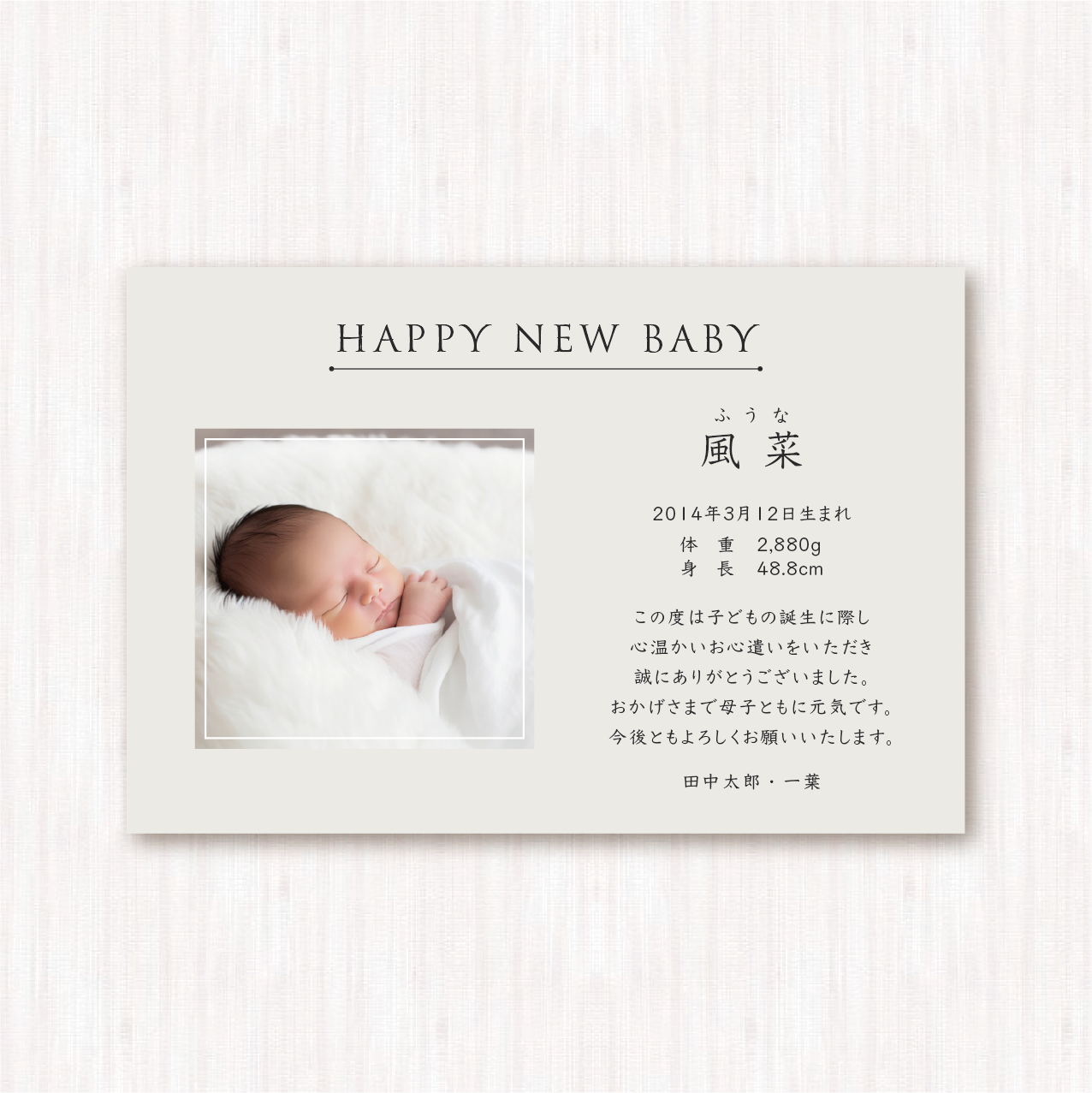 出産内祝いカード はがきサイズ シンプル おしゃれ スタイリッシュ ブラウン 100枚 | SONA DESIGN
