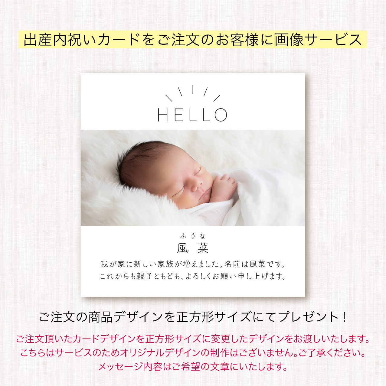出産内祝いカード はがきサイズ シンプル リボン かわいい ホワイト 100枚 | SONA DESIGN